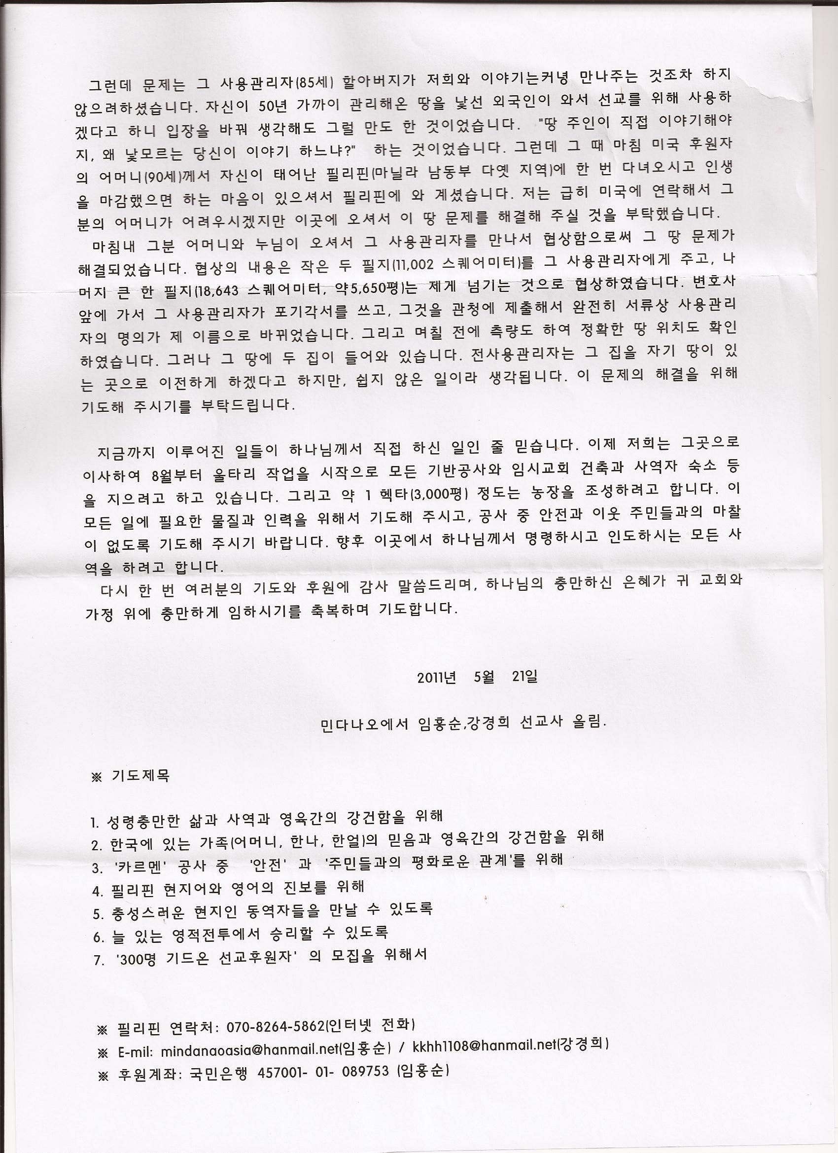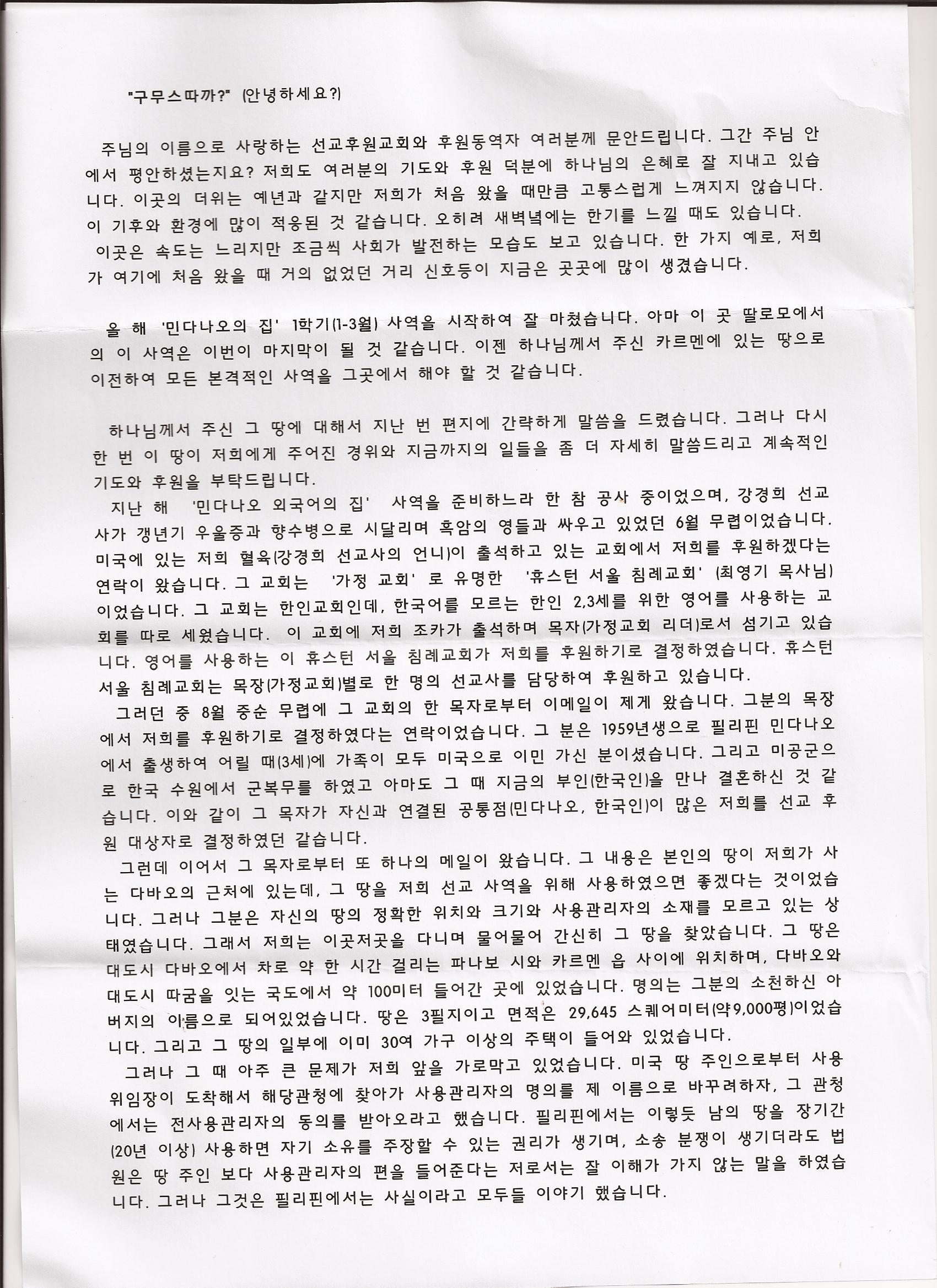 필리핀 민다나오 임흥순 선교사님의 선교 편지