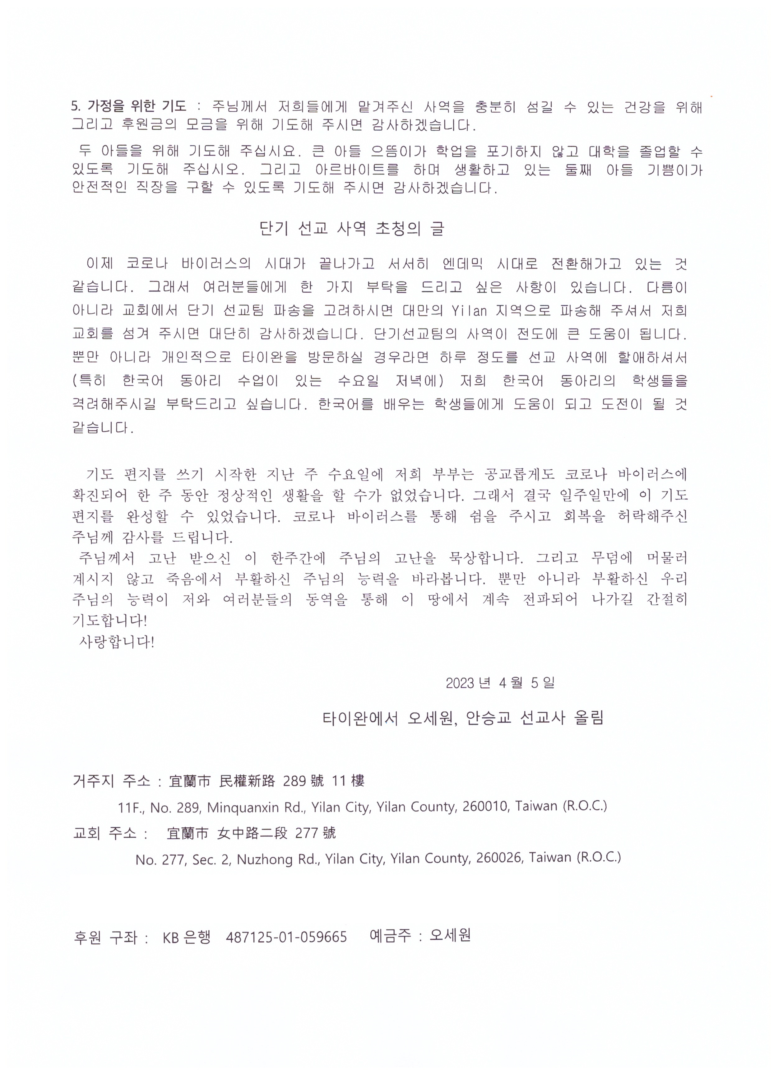 대만에서 온 선교 소식 23-04-05 (2)